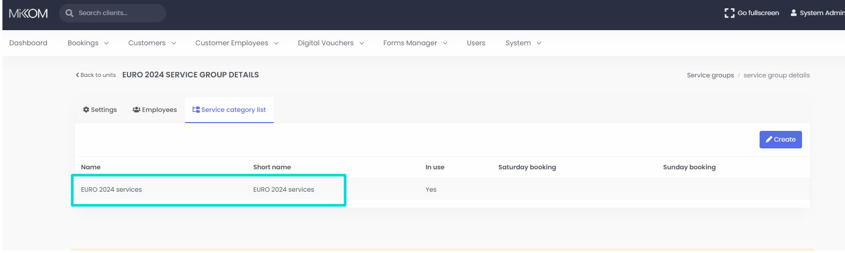 There you will be able to find a tab called "Service Category list". Click on that tab and then click on the name of the Service Category displayed there.