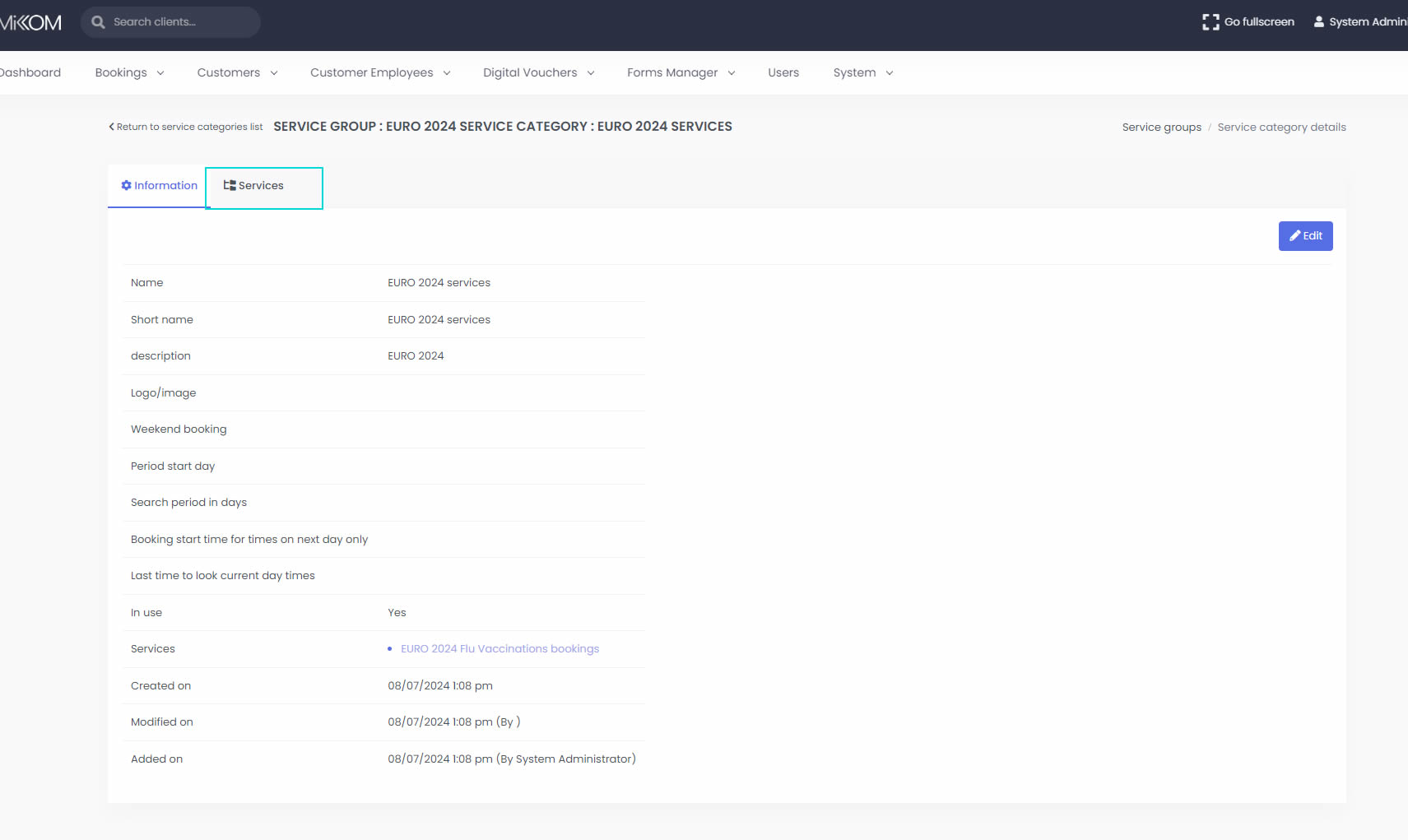 Now return to the "Service Details" page for that new service which you had created. Go to the "Locations" tab on said page and click "Edit". Tick the checkbox for the Location that you have just created in order to be used for this service and then click the "Save" button.