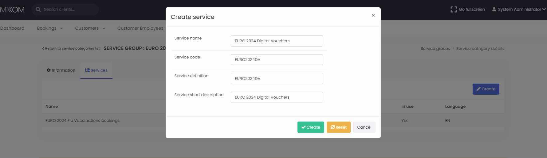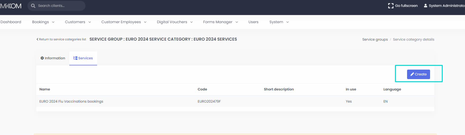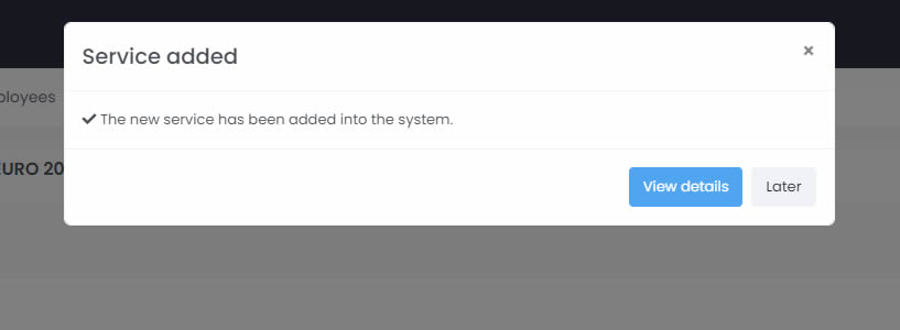 Fill in all the details requested in the form and press the green "Create" button. The service will be created and a "View Details" button will be shown, if the service has been correctly inserted into the system.